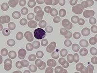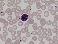 Normaler basophiler Granulozyt, Kern überlagert (Objektiv 63x Öl).